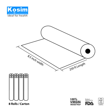 Box of 8.5" x 250 Ft Premium Crepe Headrest Paper Roll for Chiropractic Table (8 Rolls/Box)